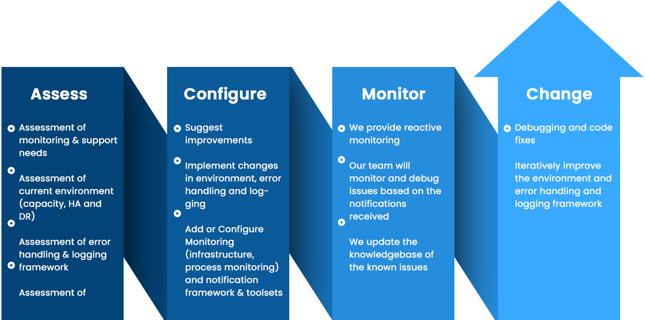 The client managed Boomi Atoms and Molecule on their private cloud. We provided monitoring and support covering the following areas