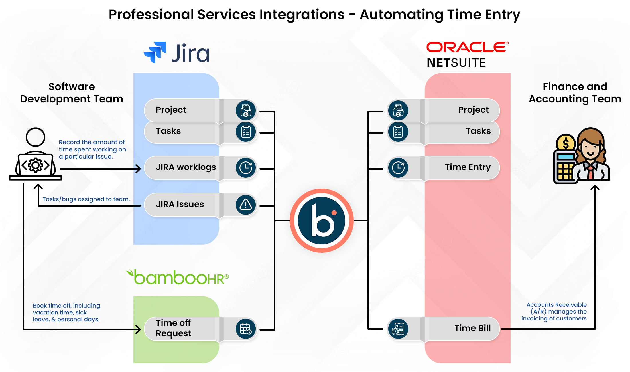 Our integration consultants, implemented an integration solution enabling real-time synchronization between Jira, BambooHR and NetSuite.